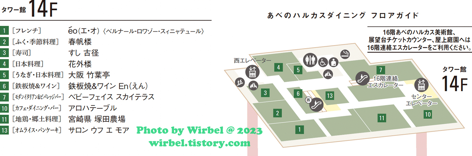 오사카 덴노지 킨텐츠백화점 아베노하루카스 식당가는 12층~14층 입니다.