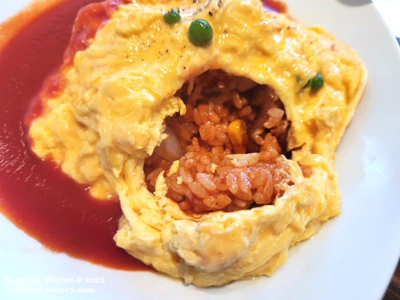 오므라이스에 뿌려져서 나오는 케첩은 조금 더 상콤한 느낌이 들긴 합니다.