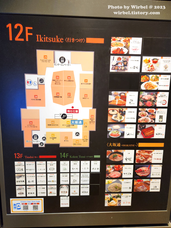 오사카 덴노지 맛집 킨텐츠백화점 아베노 하루카스 식당가 12층 안내.