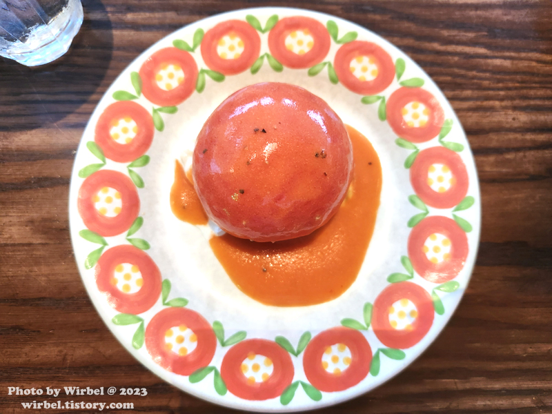 오사카 맛집 동양정 대표 애피타이저 토마토 샐러드의 토마토입니다.