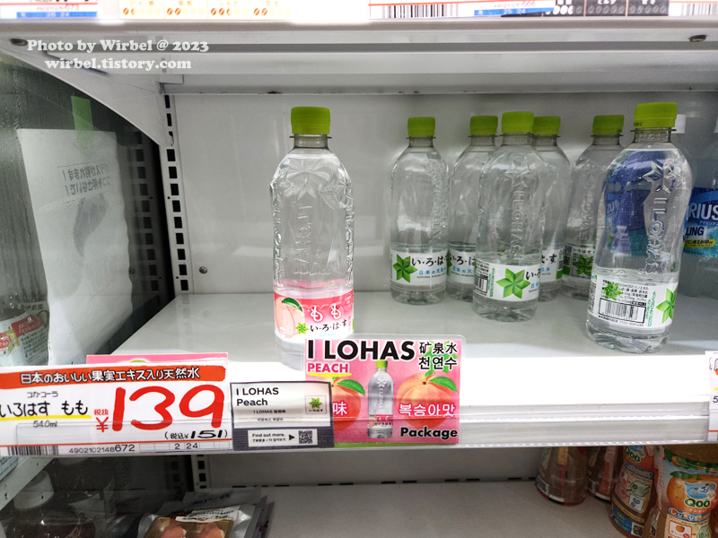 <이로하스 복숭아맛>, 가격: 150.12엔 (한화 약 1,440원)