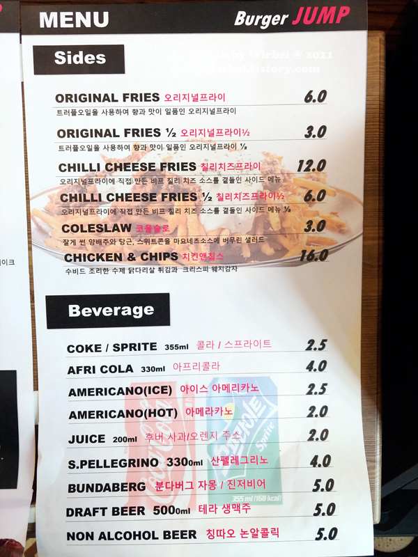 버거점프 주류 가격.