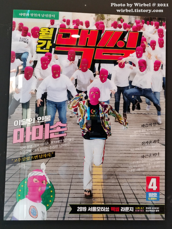입구부터 마미손 님의 트레이드 마크 핑크 가면이 전시되어 있군요.