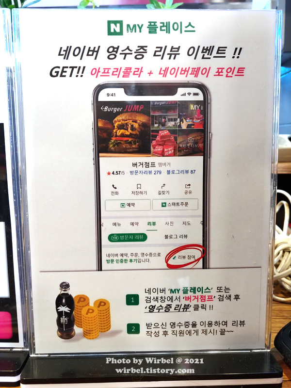 버거점프 네이버 영수증 리뷰 이벤트를 하고 있습니다.