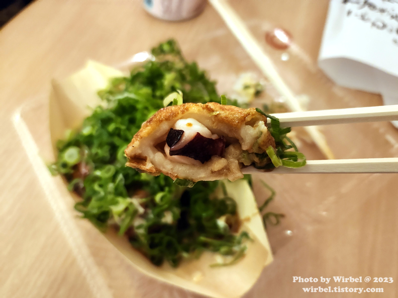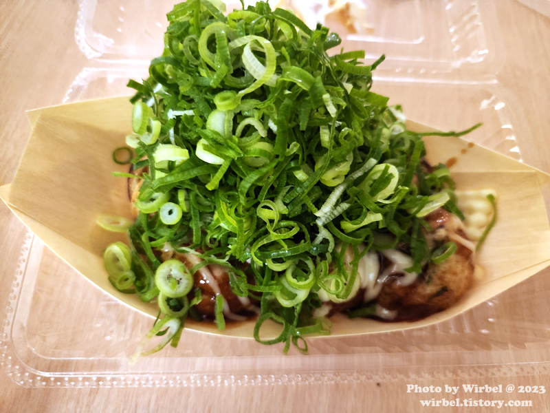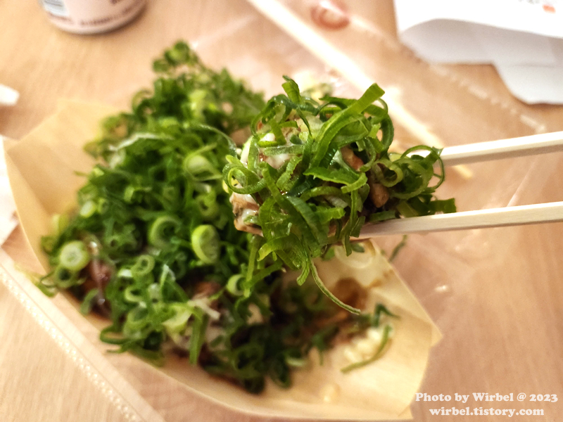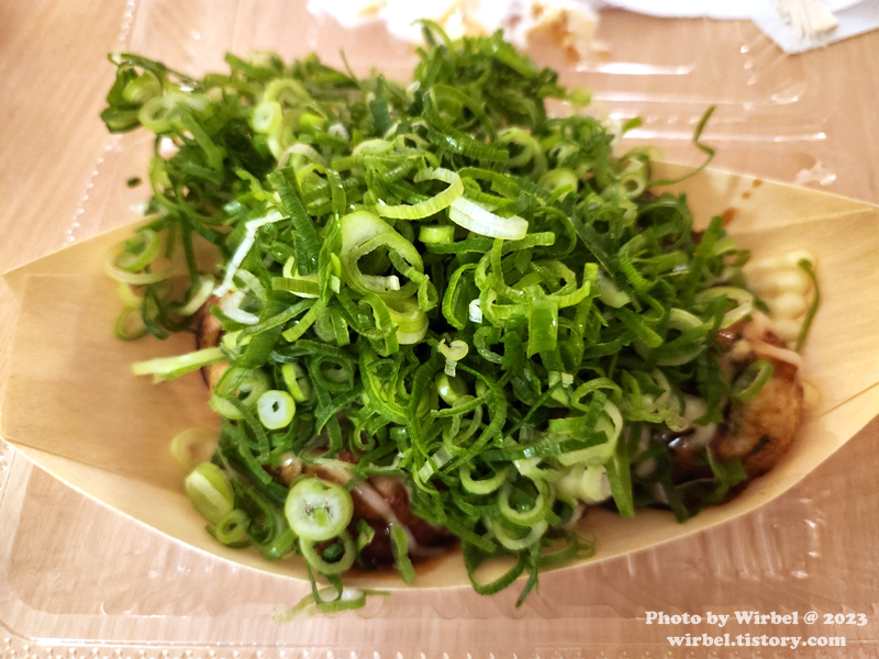 아삭아삭한 파와 함께 타코야키를 먹어봅니다.