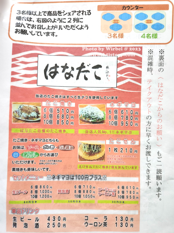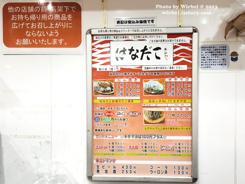 오사카 우메다 타코야키 맛집 하나다코 메뉴 가격.