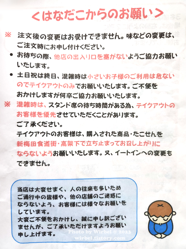 우메다 오사카 하나다코는 신우메다상가 통로에 있어서 길 막지 말아 달라고 하는 안내문입니다.