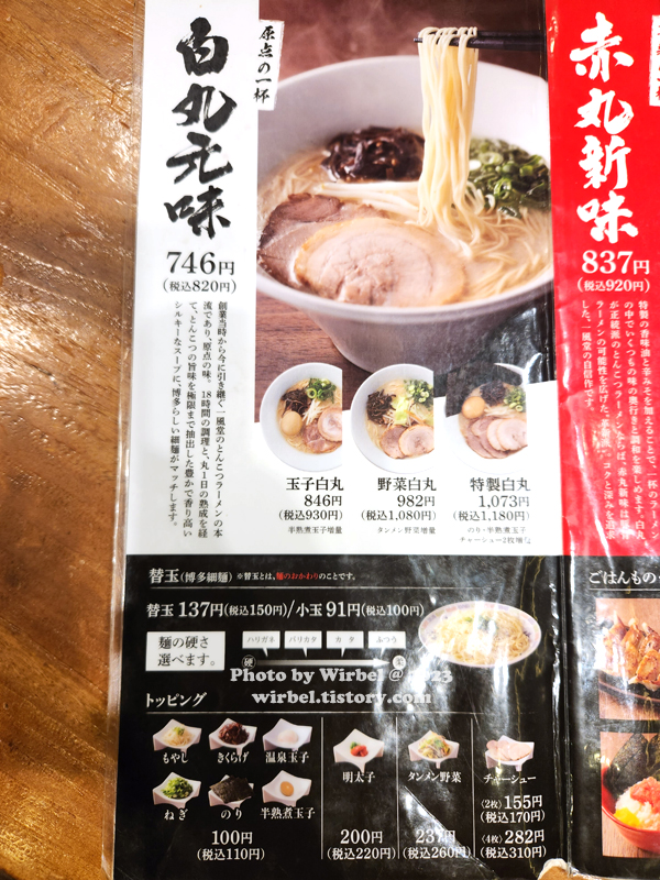 일본 잇푸도 라멘 메뉴 가격.