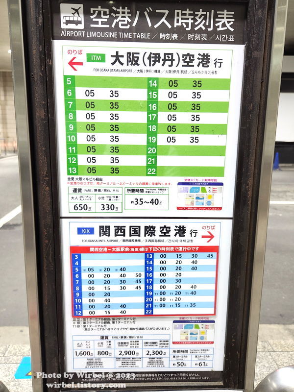 우메다 오사카역 한큐버스 공항리무진 시간표.