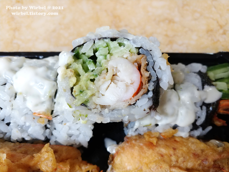 새우덴푸라롤은 왕새우튀김이 2개 들어갑니다.