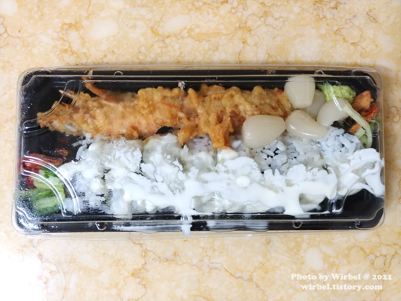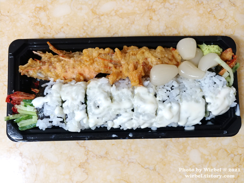 가족은 연어보단 새우를 좋아해서 새우가 들어간 를 포장해갑니다.
