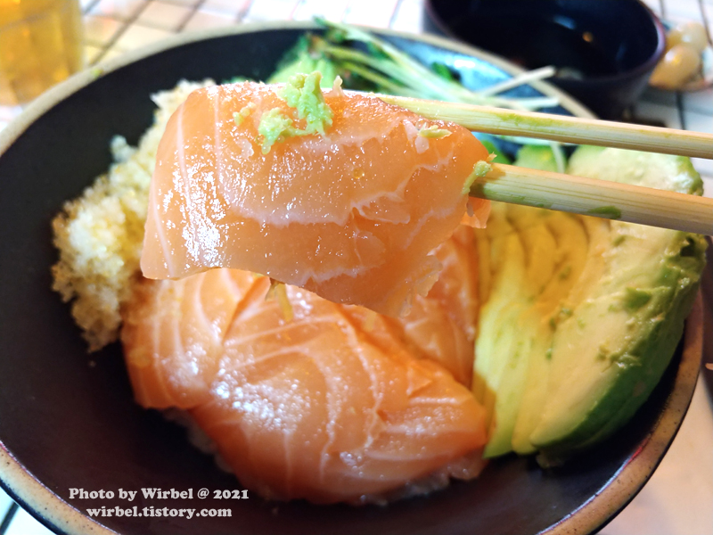 연어와 아보카도가 만났을 때의 맛도 즐겨봅니다.