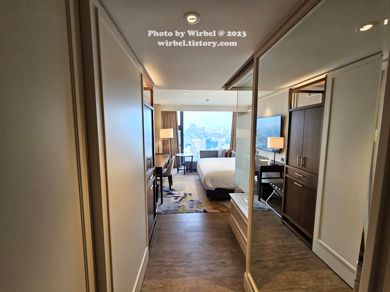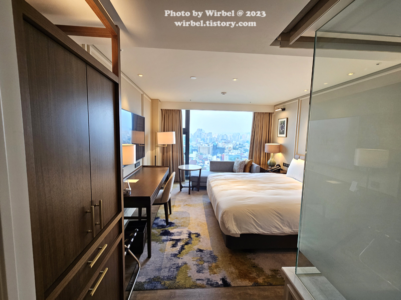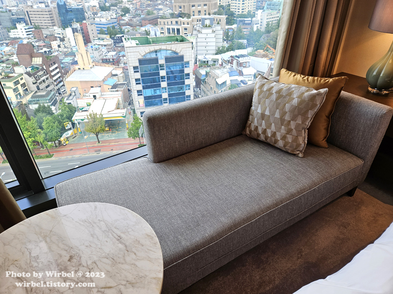 앰배서더서울풀만호텔 전망은 남산 전망과 도시 전망이 있는데 도시 전망 객실입니다.