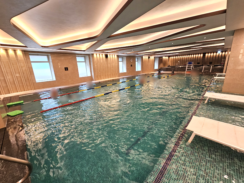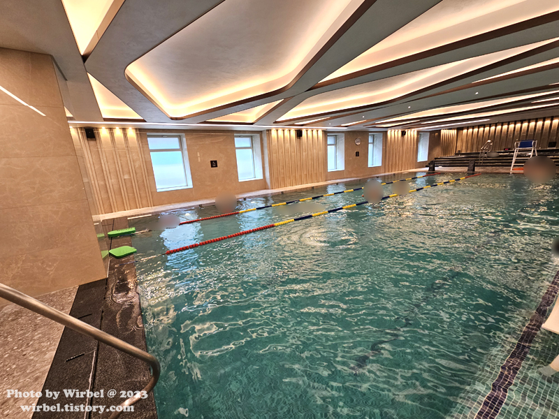 수영 왕복 레인 2개 중 1개는 회원 전용이고 그 옆은 투숙객 전용입니다.