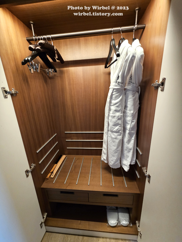 옷장, 옷걸이, 바스가운, 슬리퍼.