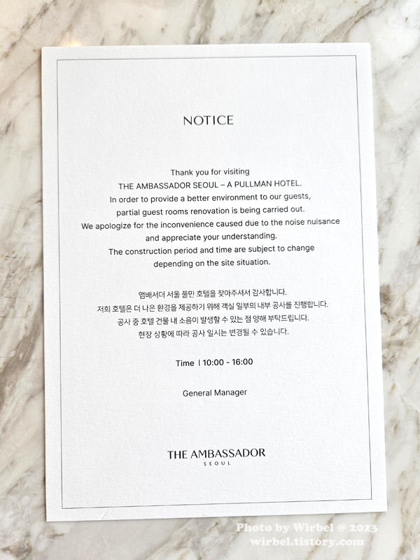 앰배서더서울풀만 호텔이 2022년 리모델링했습니다.