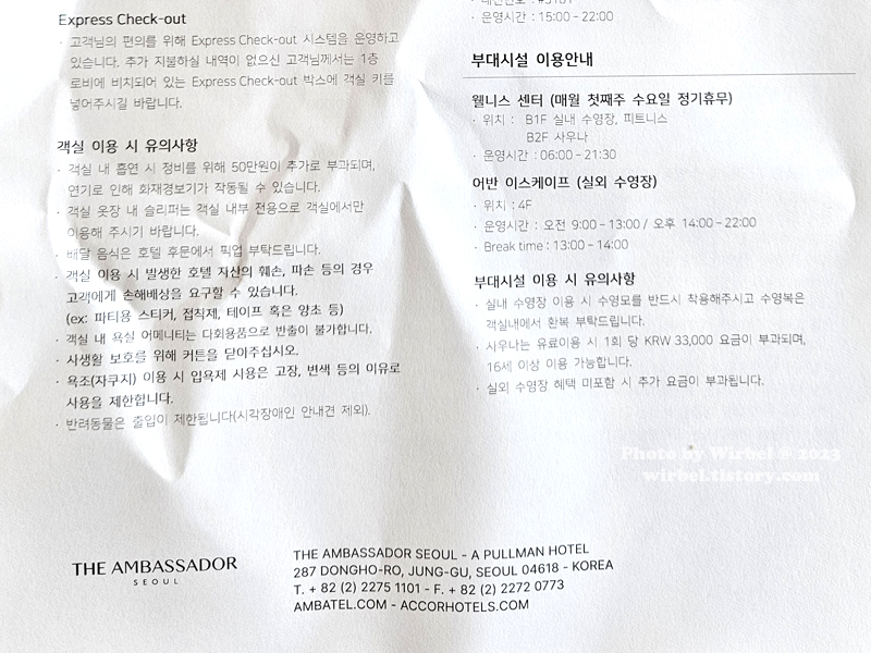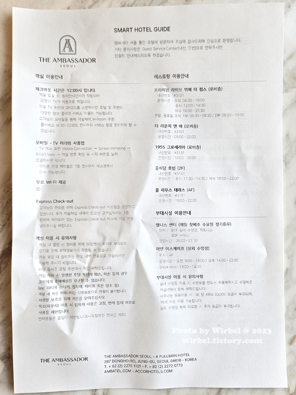 앰배서더서울풀만호텔 1박 2일 알차게 보내고 갑니다.