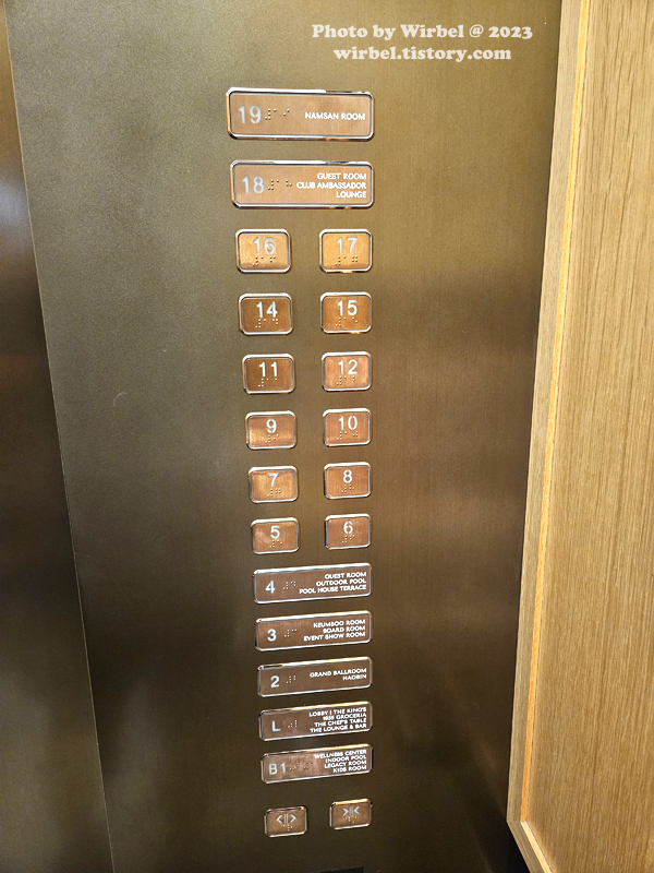서울 앰배서더 풀만 호텔 엘리베이터로 지하 1층부터 19층까지 갈 수 있습니다.