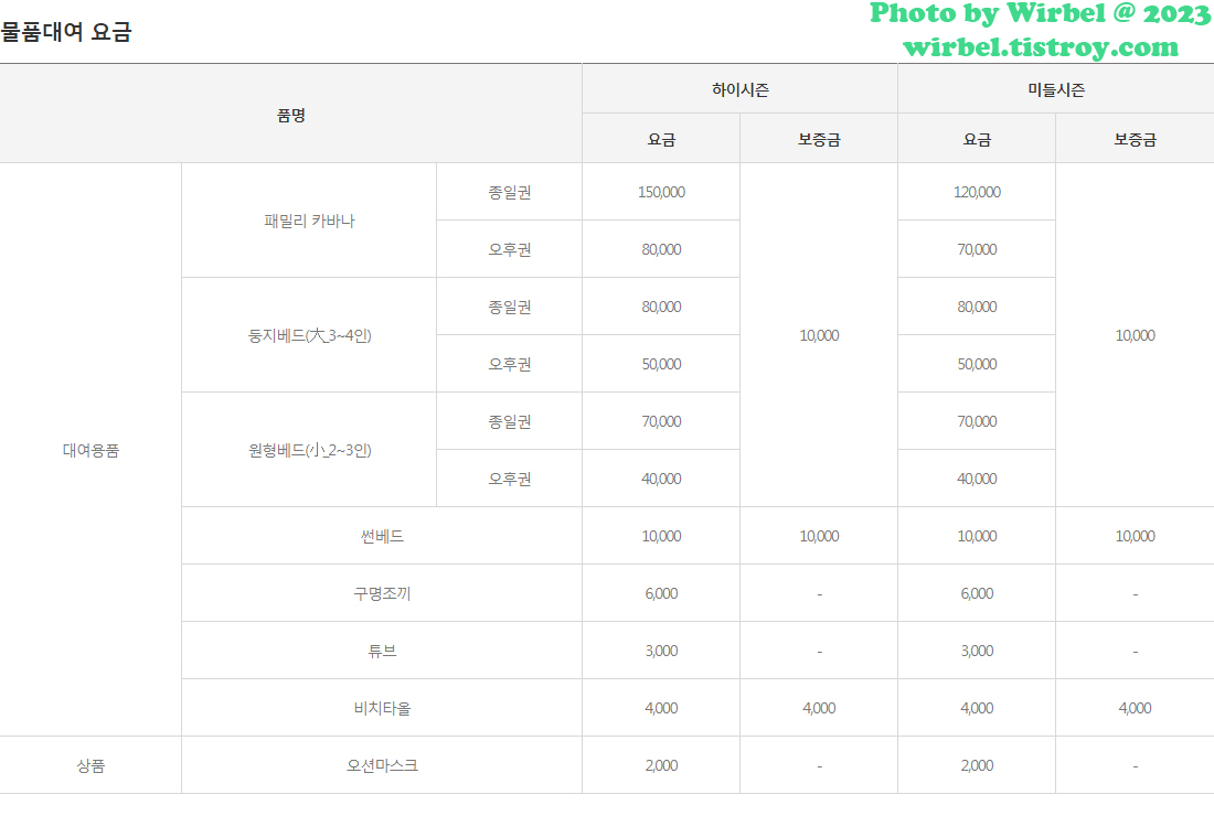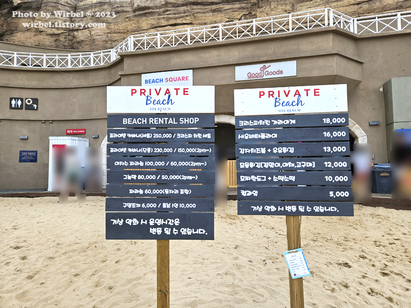 쏠비치 삼척 프라이빗 해변 렌털샵 가격.