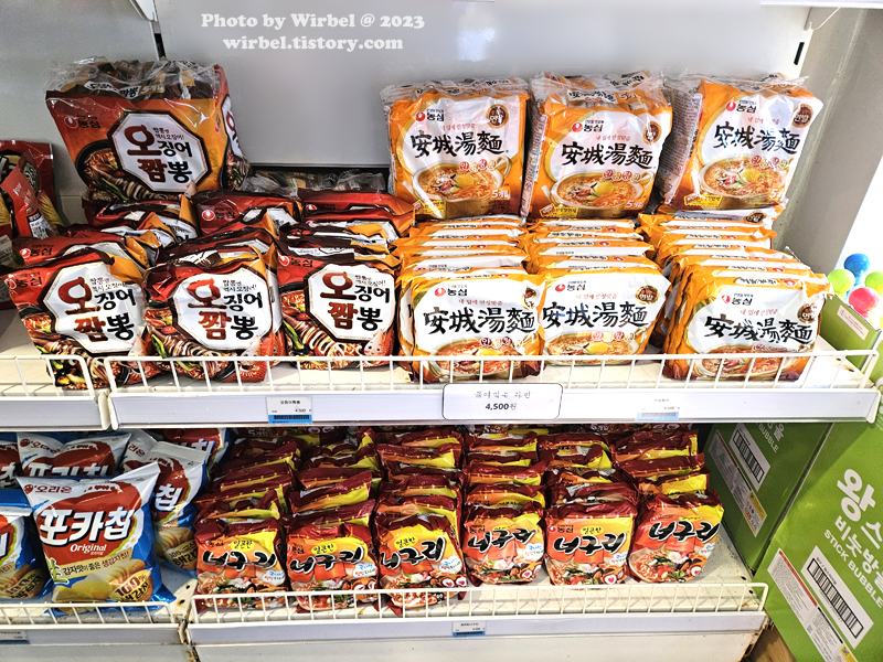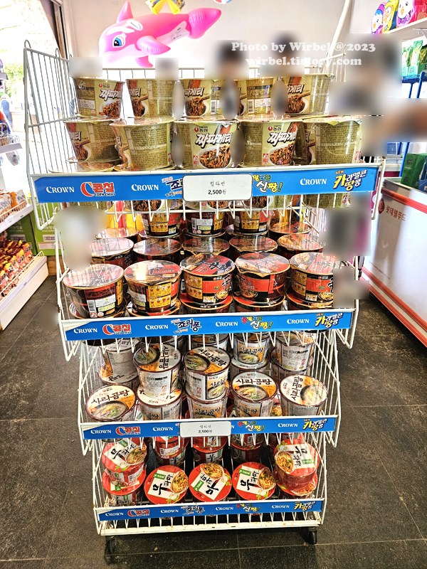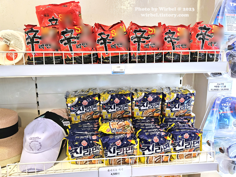 쏠비치 삼척 해변 굿앤굿즈에서는 라면과 물놀이 용품을 팔고 있습니다.