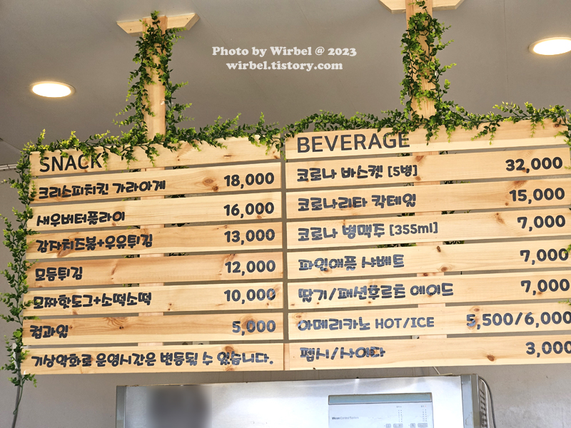 삼척 쏠비치 프라이빗 해변 스낵 맥주 가격.