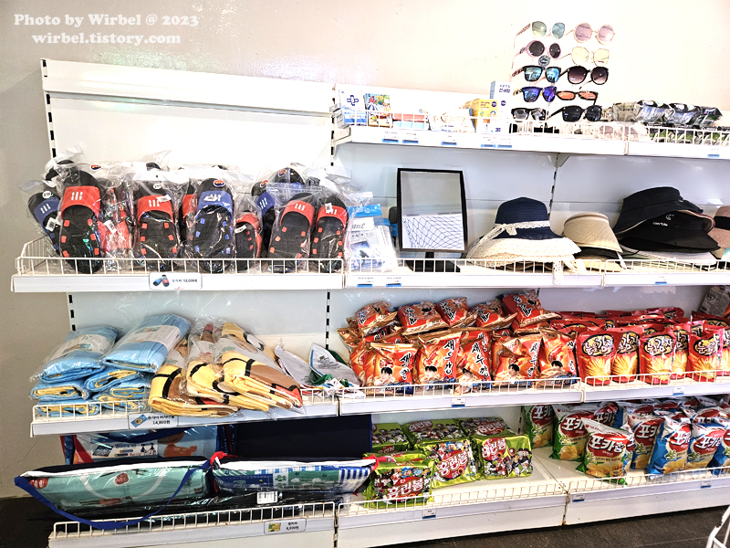 쏠비치 삼척 프라이빗 해면에서 스낵과 음료를 팔고 있습니다.