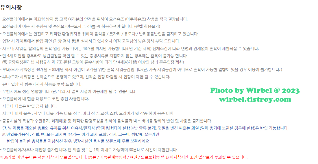 쏠비치 삼척 오션플레이 워터파크 유의사항 안내.