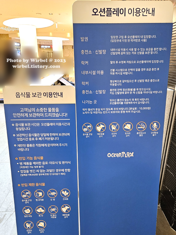 오션플레이 반입 가능 음식들 및 반입 제한 음식물 안내.