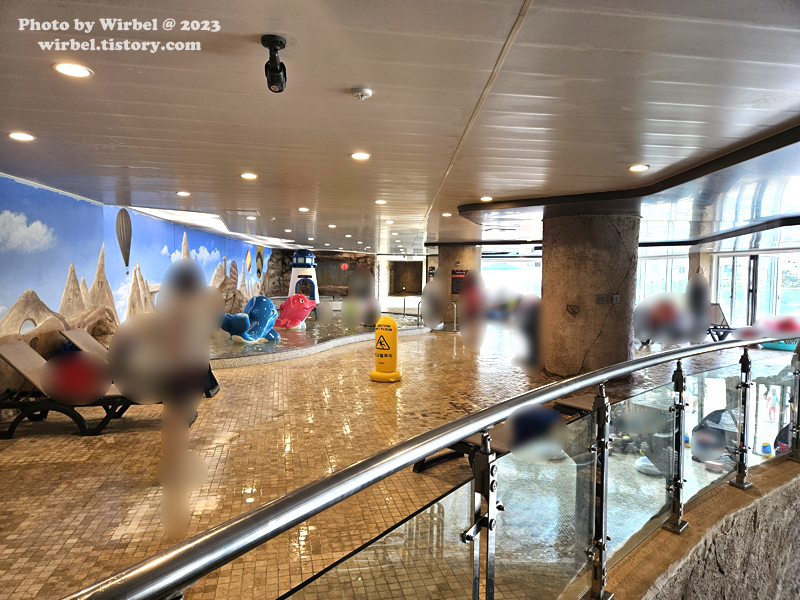 입장하면 한쪽에 키즈풀이 있고 계단을 내려갑니다.