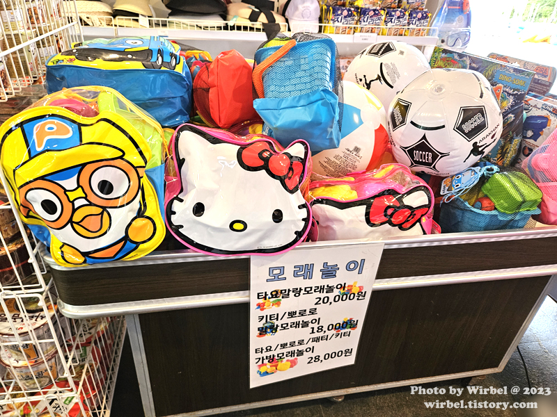 쏠비치 삼척 해수욕장 모래놀이 비치볼을 판매하고 있습니다.