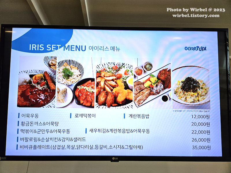 쏠비치 삼척 오션플레이 식당가 아이리스 메뉴 가격.