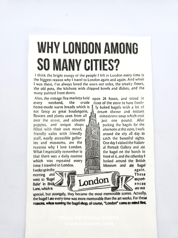 런던베이글뮤지엄 관련 내용인데 한글로 써도 좋지 않았을까 싶습니다.