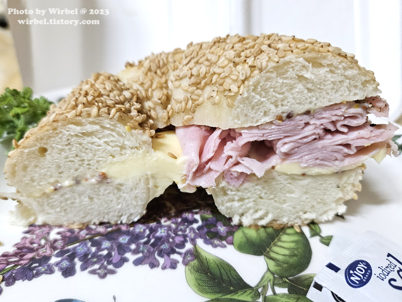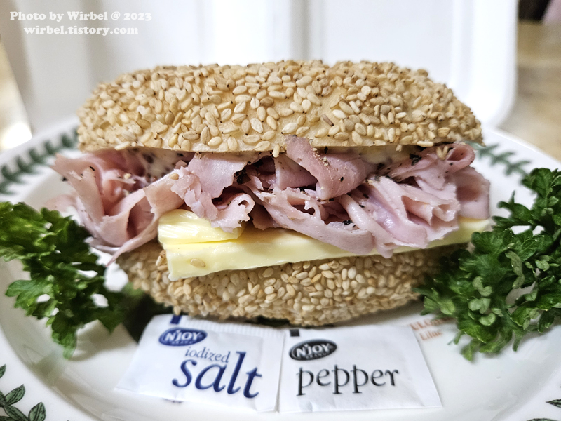 베이글로 만든 잠봉뵈르 샌드위치입니다.