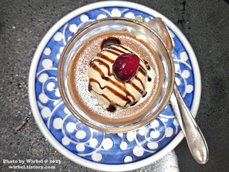 상당히 꾸덕한 초포푸딩 위에 아이스크림이 얹어져서 나옵니다.
