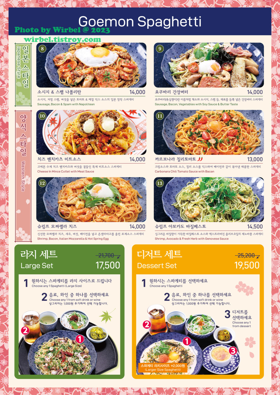 홍대 요멘야 고에몬 스파게티 메뉴 가격.