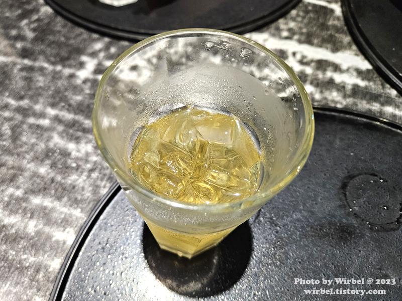 세트 음료로 주문한 유자 에이드를 마시던 중 찍었습니다.