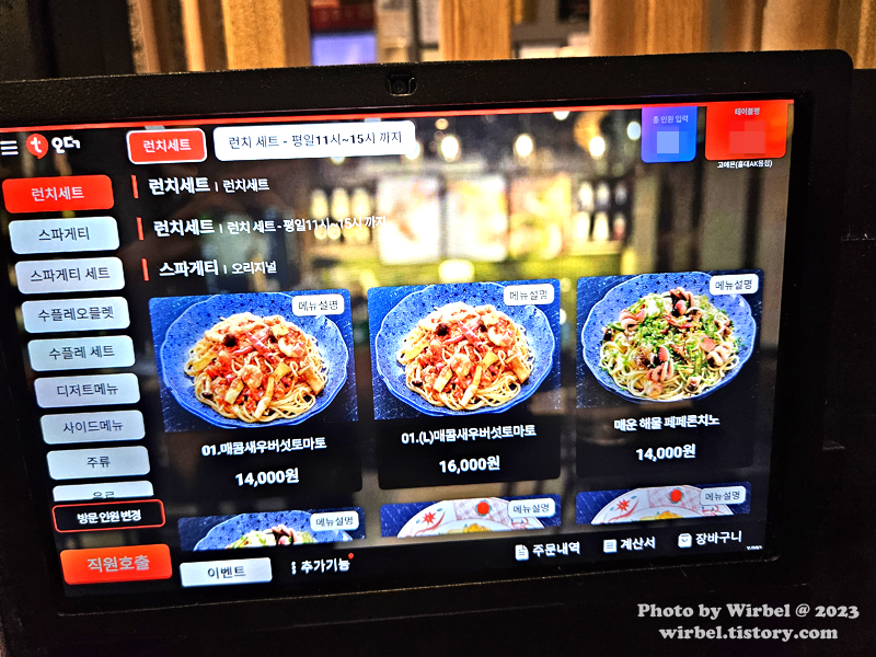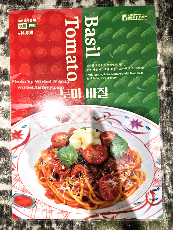 토마 바질 스파게티 14,000원.
