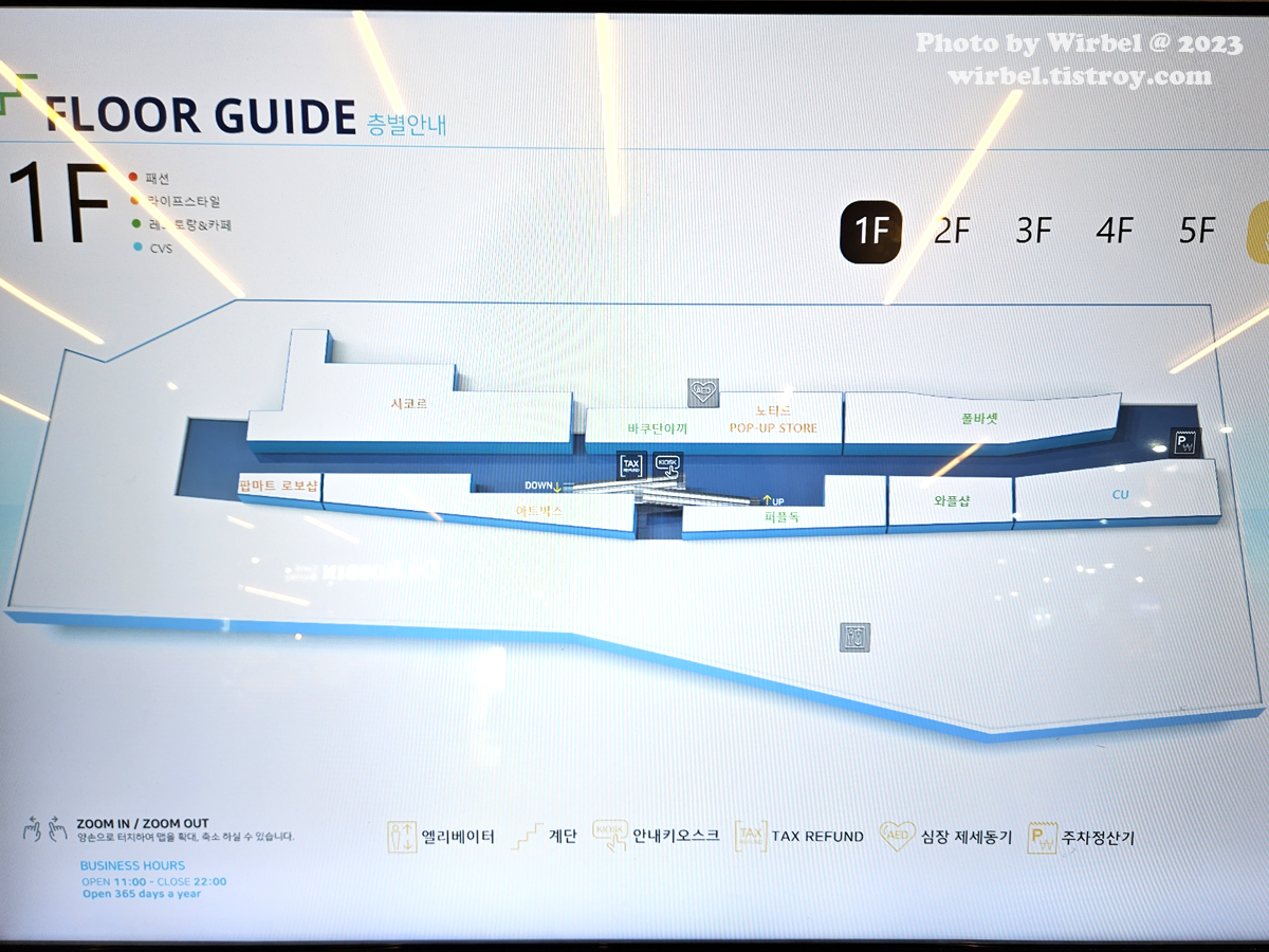 홍대 AK플라자 1층 디저트 카페 안내도.
