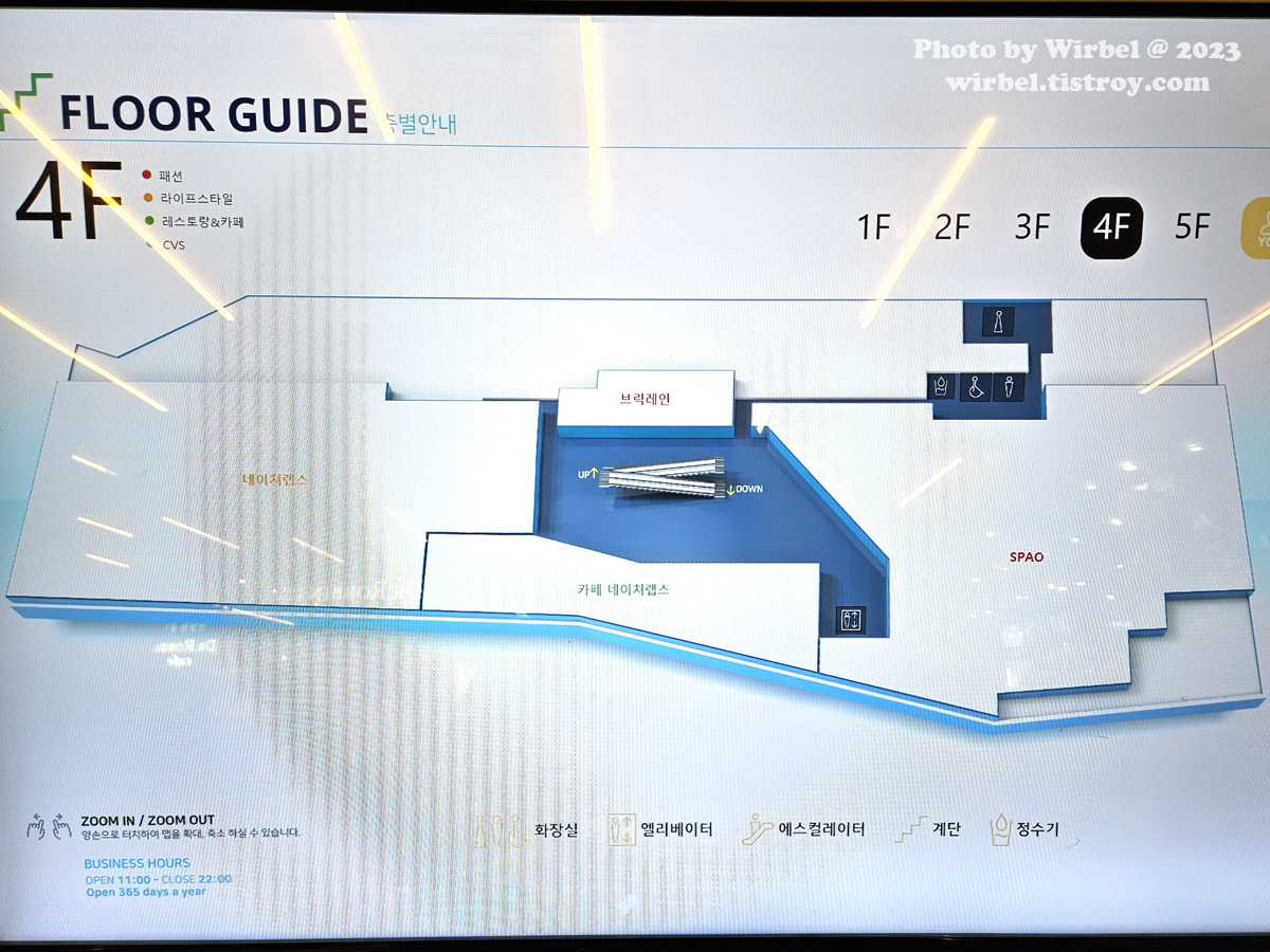 홍대 AK플라자 4층 안내도.