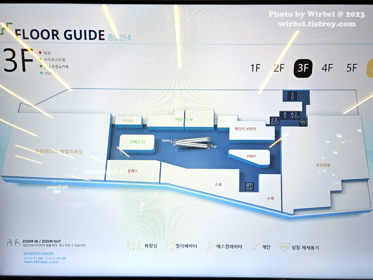 AK플라자 홍대점 3층 안내도.