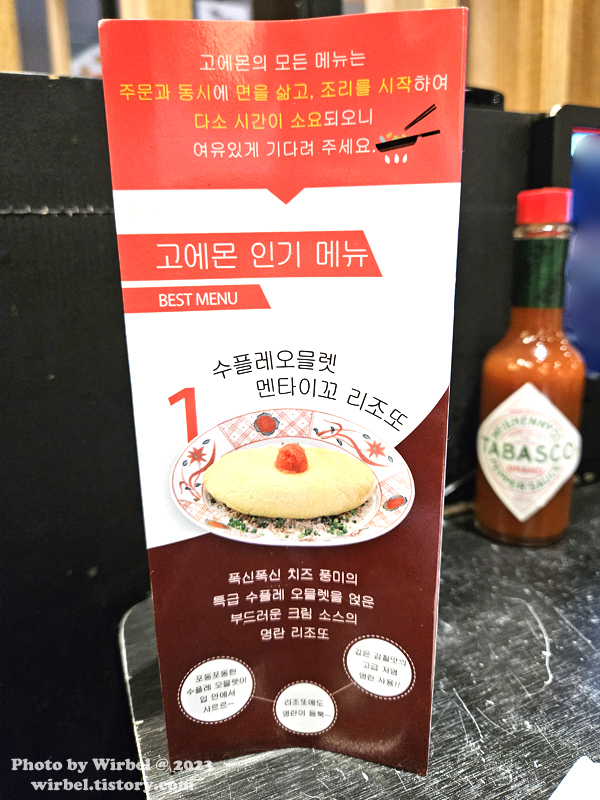 요멘야 고에몬 인기 메뉴.