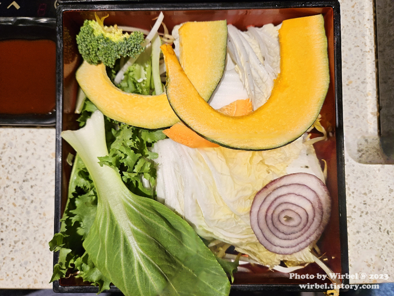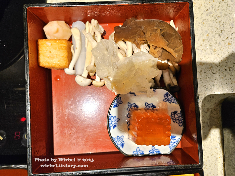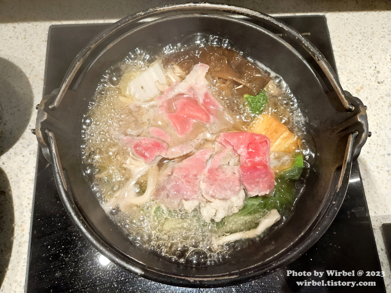 스키야키풍이라고 하는데 샤브샤브로 육수가 많은 스타일로 나와서 그런지 스키야키 느낌은 별로 없었습니다.