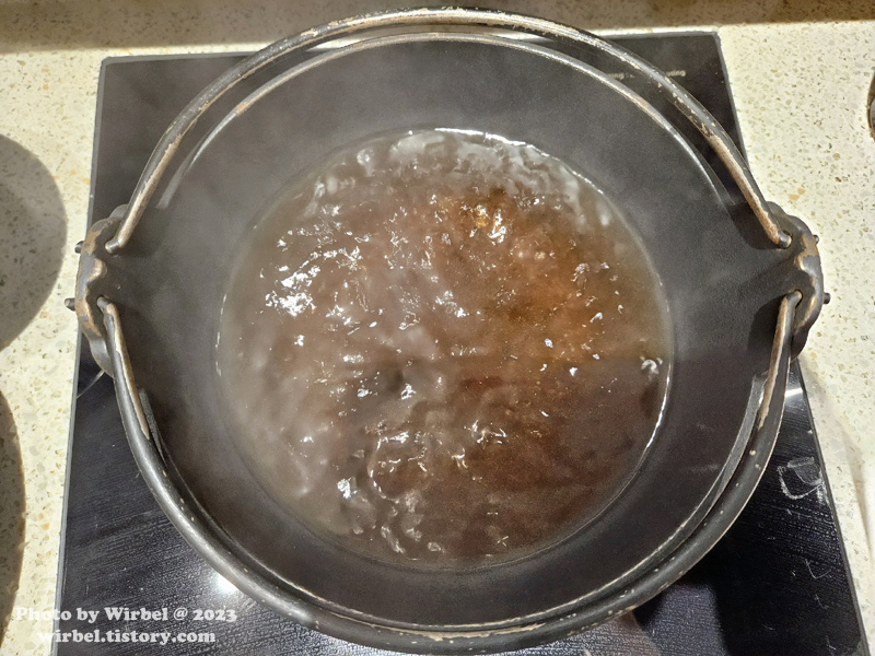 채소 먼저 넣어서 국물을 우려냅니다.