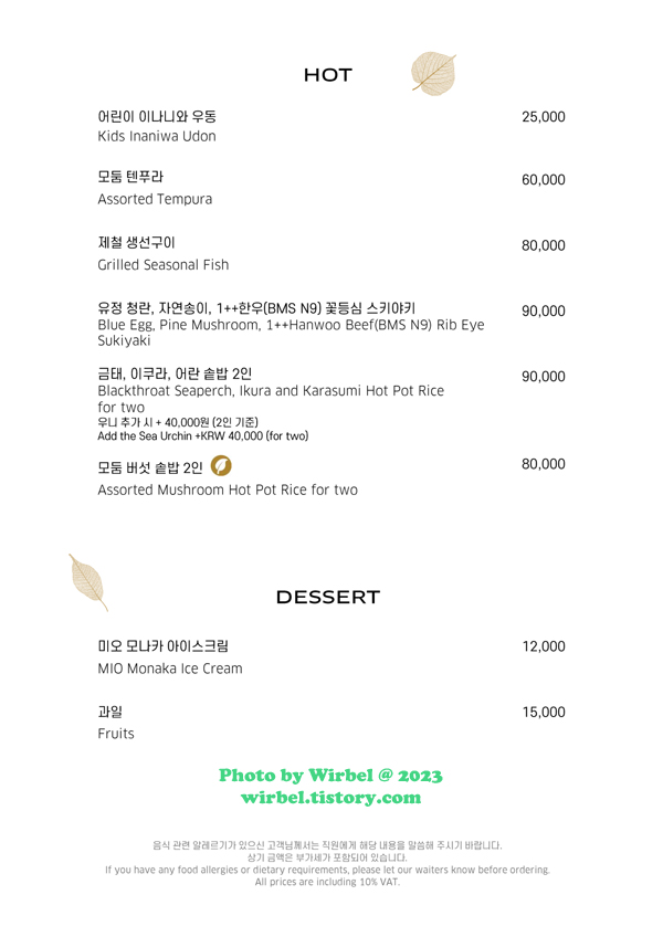 한줄평: 모던 일식 코스로 입이 호강한 날! 방문 시기: 2023년 10월 이날 가격: 270,000원 시그니처 메뉴: 일식 재방문의사: 있음 |