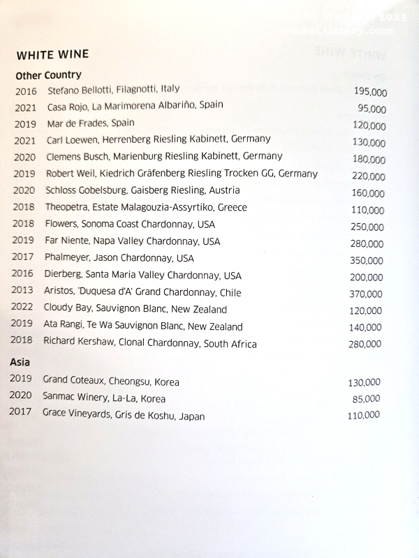 소피텔 앰배서더 서울 미오 와인 리스트.