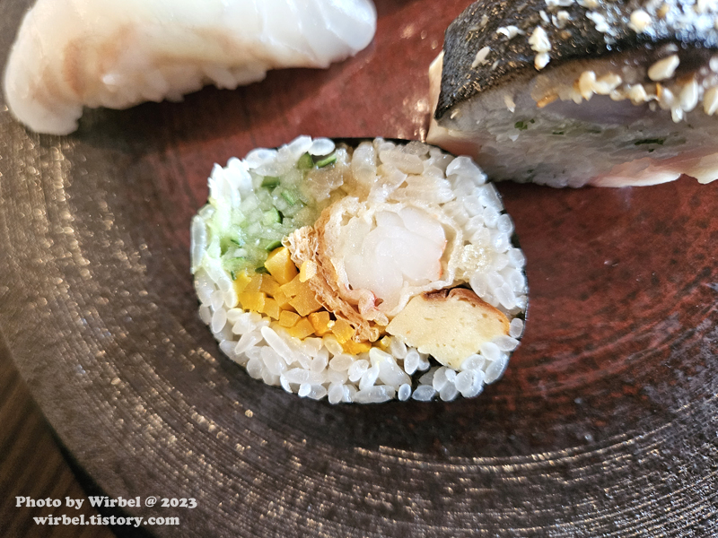 가장 안쪽에는 바 좌석이 있던데 그곳에서 스시 오마카세 서브하는 곳 같습니다.