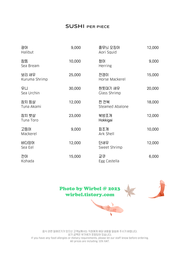 소피텔 앰배서더 서울 호텔 미오 스시 오마카세 메뉴 가격.