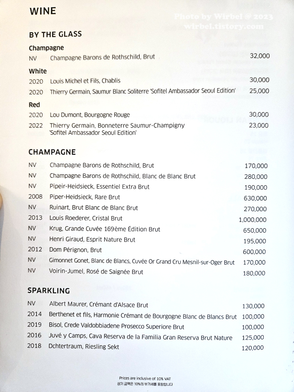 소피텔 앰배서더 서울 호텔 미오 와인 메뉴 가격.