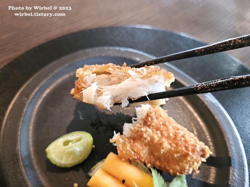 바사삭한 튀김옷을 입은 옥돔구이입니다.