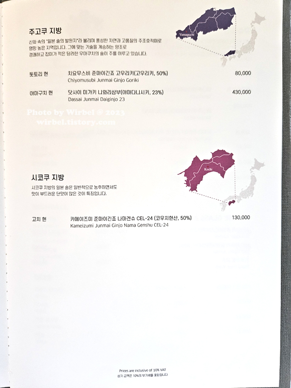 서울 소피텔 호텔 미오 사케 리스트.